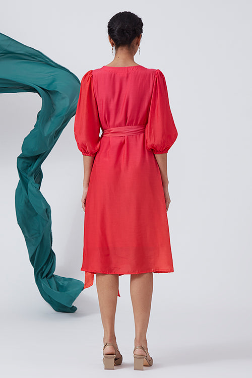 We present to you a pleasing red & blue ombre wrap dress, ‘Bougainvillea Hues’. You can wrap this stunning dress in a way that flatters your figure. Made from muslin silk fabric, you will find it extremely breathable & comfortable wherever you go. We have added pockets on the side, gathers around the shoulder & edge of the sleeve gives it the required perfect fit. Could it be any nicer? Add this to your shopping list now!